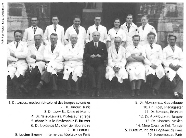 Lucien Brumpt. Photo de groupe. Hommage à la mémoire du professeur Lucien. C. Brumpt. J.C. Petithory. Bulletin Pathologie Exotique. 8 decembre 1999 (Arch. Inst. Pasteur Paris (Fonds Brumpt)
