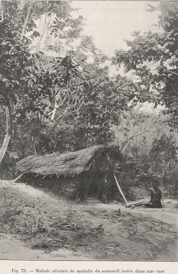 Malade atteinte de maladie du sommeil isolée dans une case. La maladie du Sommeil au Congo Francais. 1906 1908. Martin, Leboeuf, Roubaud. Masson Ed. 758p